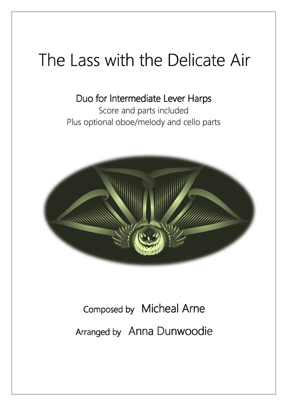 The Lass with the Delicate Air is a beautiful 18th century art song by composer Michael Head (1741-1786 - gone too soon!) and lends itself very well to being arranged into a harp duet. The vocal embellishments work beautifully on the harp, and in this arrangement there is an optional melody line (I had oboe in mind but any melody instrument will sound lovely) and cello line.