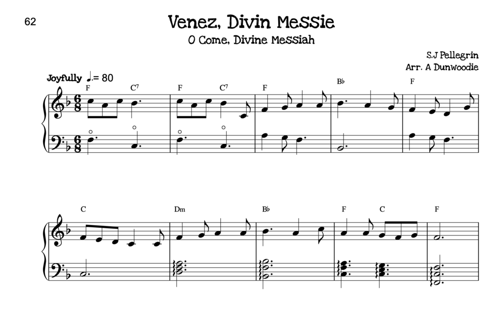 O Tannenbaum, The Old Yeare Now Away Is Fled, Once In Royal David’s City, Orientus Partibus, Pat-a-Pan, Quittez Pastuers, Quando Nascette Ninno, Quelle Est Cette Odeur Agreable, Ring Out Wild Bells, Riu Riu Chiu, The Rocking Song, See Amid The Winter Snow, The Seven Joys Of Mary, Silent Night, The St Day Carol, Star in the East, Still, Still, Still, The Sussex Carol, This Is The Truth Sent From Above, To Drive The Cold Winter Away, Un Flambeau Jeannette, Isabelle! Unto Us A Son Is Born, Venez, Divin Messie, The Virgin Mary Had A Baby Boy, Watts’ Cradle Song, We Three Kings, We Wish You A Merry Christmas, The Wexford Carol, What Child Is This? While Shepherds Watch Their Flocks By Night, Zion’s Daughter.