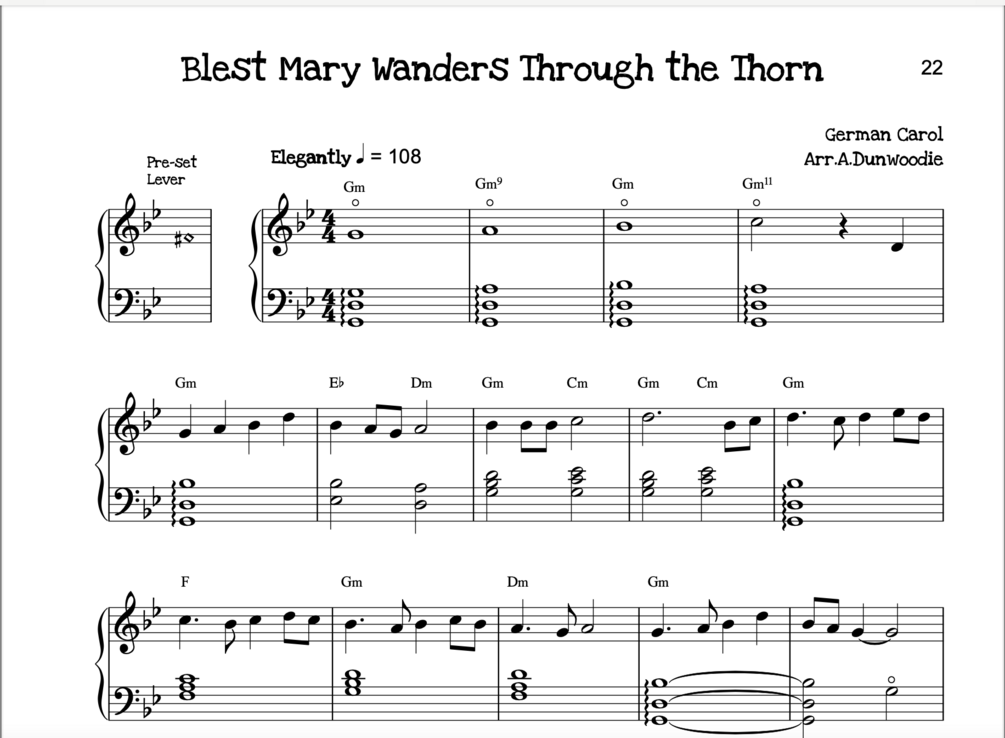 This is the first of three volumes which make up the 101 Carols and Songs of Celebration. Thirty three songs from around the world, and two versions of three songs which had alternative melody lines. For intermediate harp, with a few lever pre-sets and changes, a wide variety of keys, arranged to fit on a 34 string harp. Includes a range of harp effects.